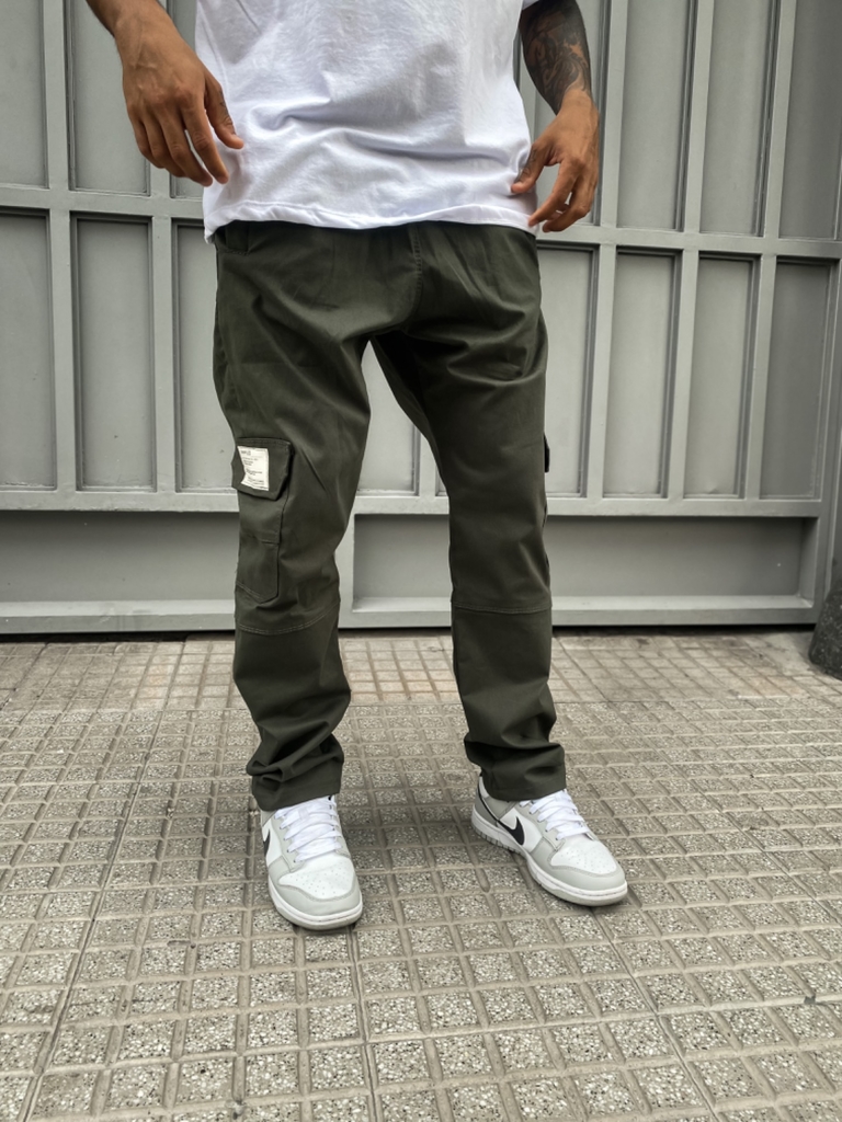 Pantalon cargo oversized de gabardina sanforizada, con elastico en cintura.